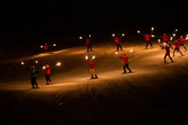 Bitlis'te hava sıcaklığının sıfırın altında eksi 20 dereceyi bulduğu Rahva'da meşaleli kayak gösterisi düzenlendi.