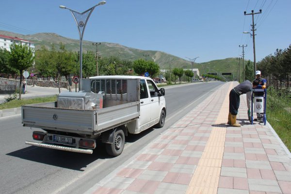 Bitlis Belediyesi kaldırımlara çöp kovası yerleştiriyor