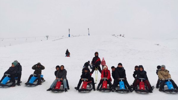 El-Aman Kayak Merkezi’nde düzenlenen etkinliğe katılan gençler, ücretsiz olarak faydalandığı kayak ve kızaklar ile gün boyunca kar ve eğlencenin keyfini sürdü.
