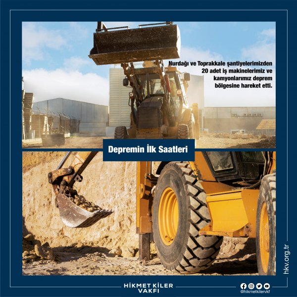 Hikmet Kiler Vakfı tarafından yapılan bilgilendirmede, “Depremin ilk saatlerinde 20 iş makinesi ve kamyonlarımız deprem bölgesine hareket etti. Aras Elektrik Dağıtım A.Ş. ile Kütahya Şeker A.Ş. bünyesindeki araçlar ve personeller ile gerekli araç gereçler bölgedeki altyapı çalışmalarına başladı. Temel ihtiyaç yardım tırları ile araçlar afet bölgesine gitti. Şantiyelerdeki konteynerler sökülerek afet bölgesine gönderildi. Ekmek fırını ve aşevleri kuruldu, yemek dağıtımları günde 3 öğün şeklinde her gün devam ediyor. Elbistan'da ilk etapta 150 konteynerden oluşan ve 1000 kişinin barınacağı, içinde sağlık merkezi, fırın ve aşevi bulunan bir Konteyner Mahallesi oluşturuldu. Nurdağı’nda da 1000 kişinin yaşayabileceği Konteyner Kent hazırlığımız sürüyor. Ayrıca bu ailelerimiz için aşevi de kuruyoruz” denildi.