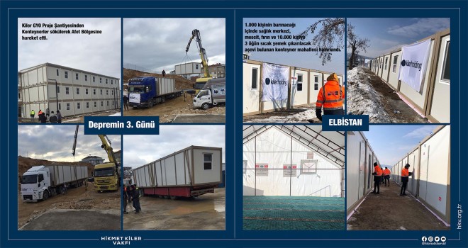 Kahramanmaraş'ta meydana gelen ve 10 kentte yıkımların yaşandığı deprem bölgesine iş makinelerini göndererek arama kurtarma faaliyetlerini destek olan, afet bölgesinde sosyal imkan ve donatılar kurarak depremzedelerin yaralarını sarmaya çalışan Kiler Holding ile Hikmet Kiler Vakfı, Kahramanmaraş’ın Elbistan ilçesinde bin kişilik Konteyner Mahalle kurdu ve Gaziantep’in Nurdağı ilçesinde de bin kişilik Konteyner Kent kurmaya başladı.
