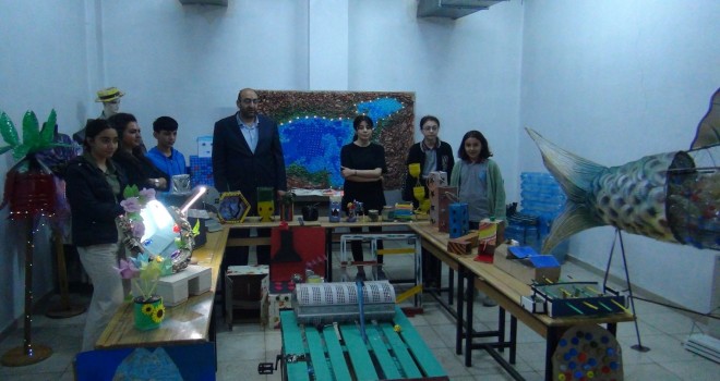 Doğanın Korunmasına Dikkat Çekmek İsteyen Öğrenciler Geri Dönüşüm Malzemelerinden Eserler Yaptı