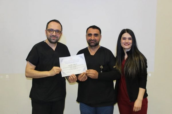Öte yandan programda anlamlı bir ödül töreni de gerçekleştirildi. 2025 yılı “Yılın Temizlik Personeli” seçilen Genel Yoğun Bakım 1 Servisi çalışanı Tekin Cantürk’e, özverili çalışmalarından dolayı teşekkür belgesi verildi. Belge, Başhekim Yardımcısı Uzm. Dr. Fatih Turan Ayılgan tarafından takdim edildi.