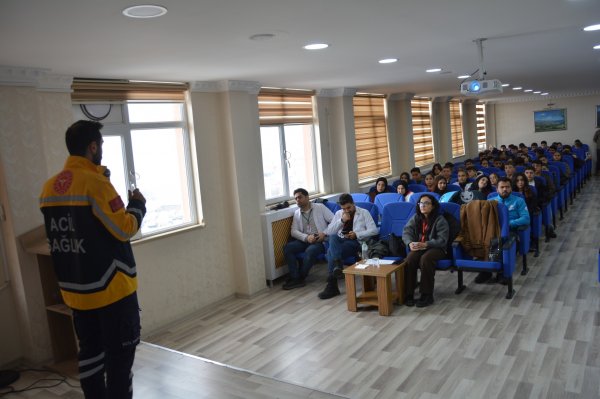 Sağlık Bakanlığınca başlatılan “Genç Akademisi Eğitimi” çerçevesinde, Tatvan Atatürk Mesleki ve Teknik Anadolu Lisesi’nde düzenlenen eğitim programına katılan 112 Acil Servis ve UMKE ekipleri tarafından öğrencilere ilk yardımı kapsayan konular anlatıldı ve acil durum anında yapılacak müdahaleler uygulamalı olarak gösterildi.
