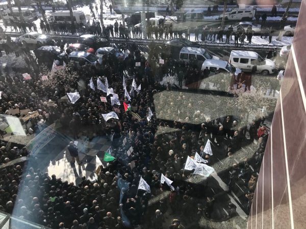Bitlis’in Tatvan ilçesindeki Sivil Toplum Kuruluşları (STK), ABD'nin Kudüs'ü İsrail'in başkenti olarak tanımasına tepki göstermek amacıyla yürüyüş ve basın açıklaması yaptı.
